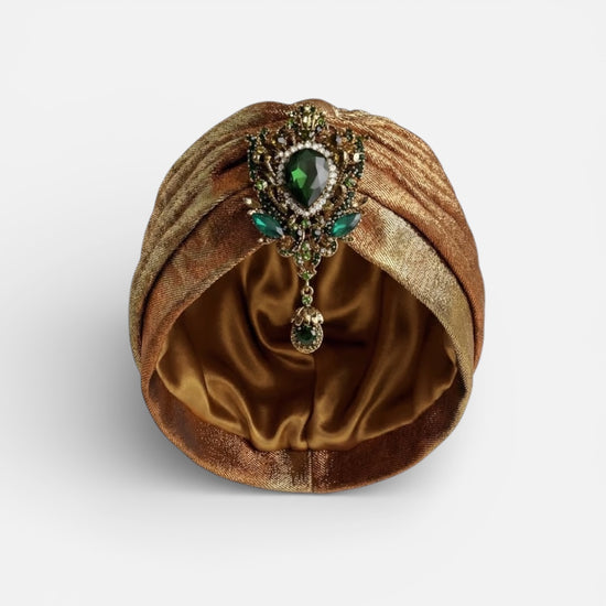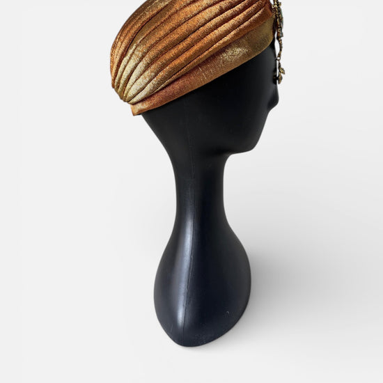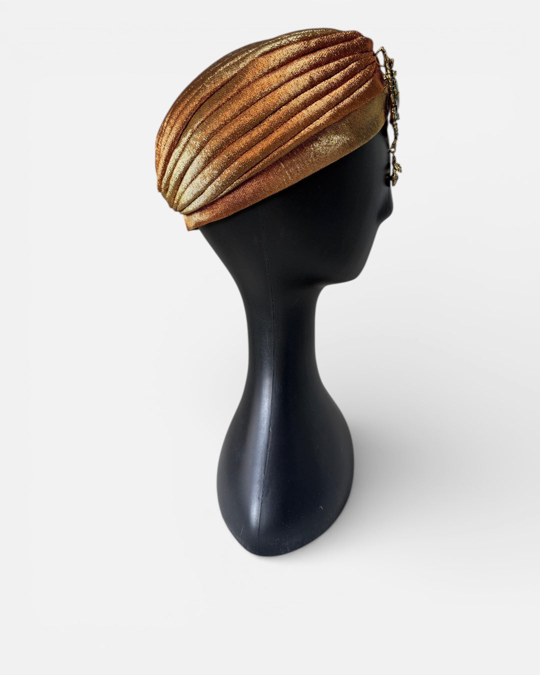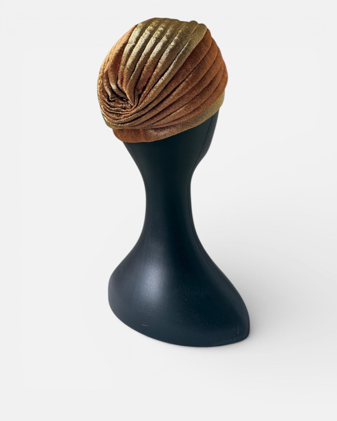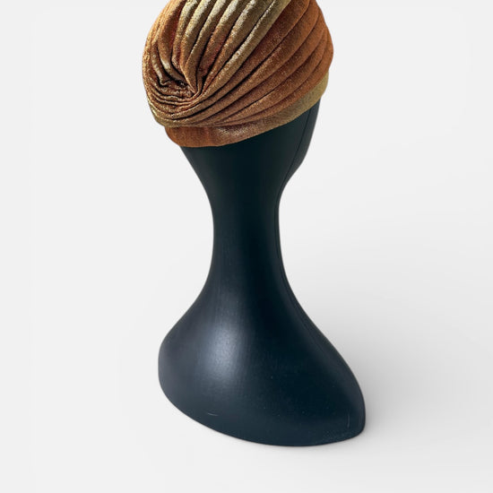 Designed and made in London, this turban is suited to evening occasions, formal events, and elevated day-to-night styling.