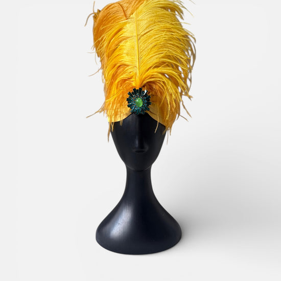 This piece features ostrich feathers, which are removable for versatility and ease of wear.