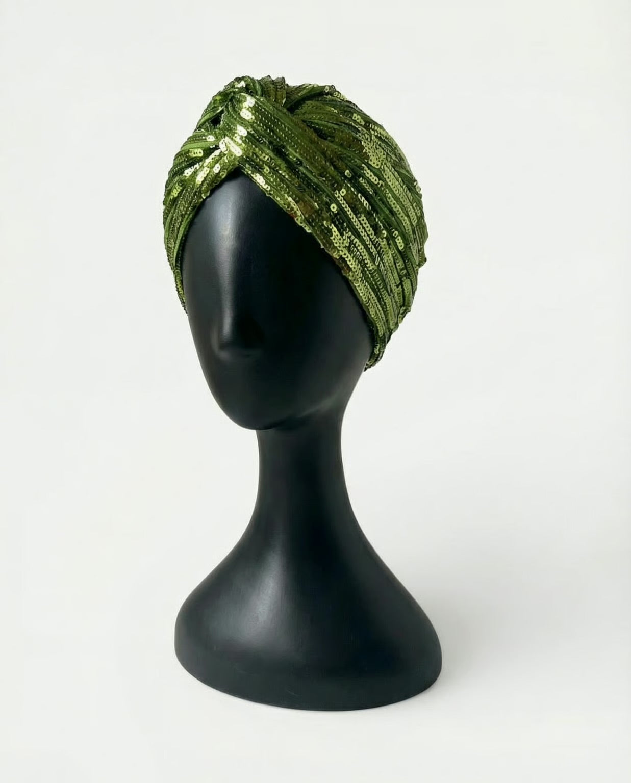 Designed and made in London, these turbans are created for evening occasions, destination events, and elevated styling, combining timeless craftsmanship with modern sophistication.