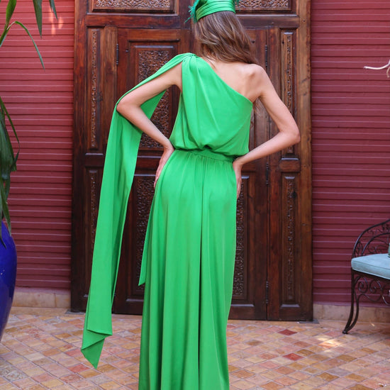 This classic one-shoulder maxi dress is a perfect choice for any occasion. Weather a fancy luncheon event, an elegant holiday sightseeing day or even a wedding, this dress fits all.